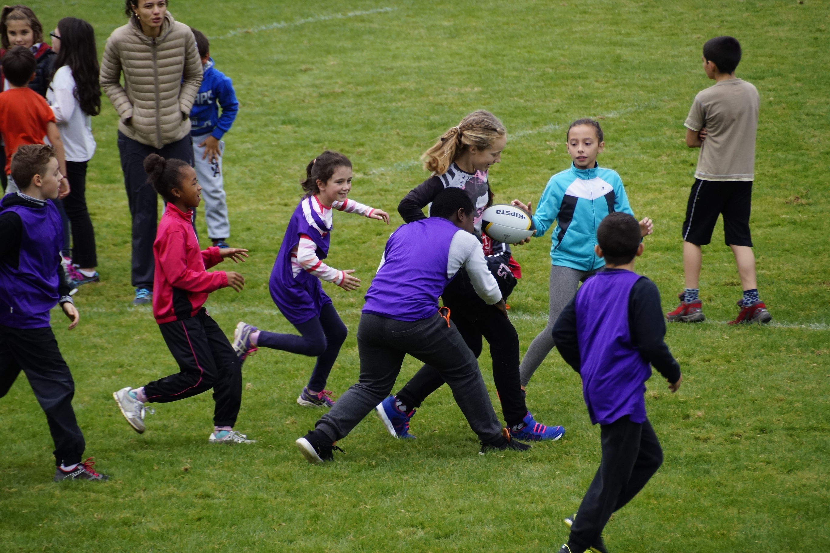 Tous les enfants ayant participé à cette journée ont suivi un cycle éducatif rugby en temps scolaire, co-animé par l’enseignant et un éducateur de l’association Rebonds! ou un éducateur du club de Saint-Gaudens. 36 équipes ont été constituées en amont par l’éducateur sportif référent du cycle et le professeur des écoles, en fonction du niveau d’engagement de chaque élève (+, ++, +++). Ces différents niveaux ont permis une pratique sécuritaire et des rencontres sportives équilibrées. Il s’agissait donc d’un tournoi de rugby à plaquer, en mixité de genre où les élèves de chaque école étaient mélangés. A la fin de chaque match, trois critères ont été pris en compte : le score (2 points pour la victoire, 1 point pour le match nul et 0 pour la défaite), le fair-play (1 point) et la coopération (1 point). Ces 2 dernières notions sont celles sur lesquelles les enfants travaillent tout au long des séances avec les éducateurs et les enseignants.